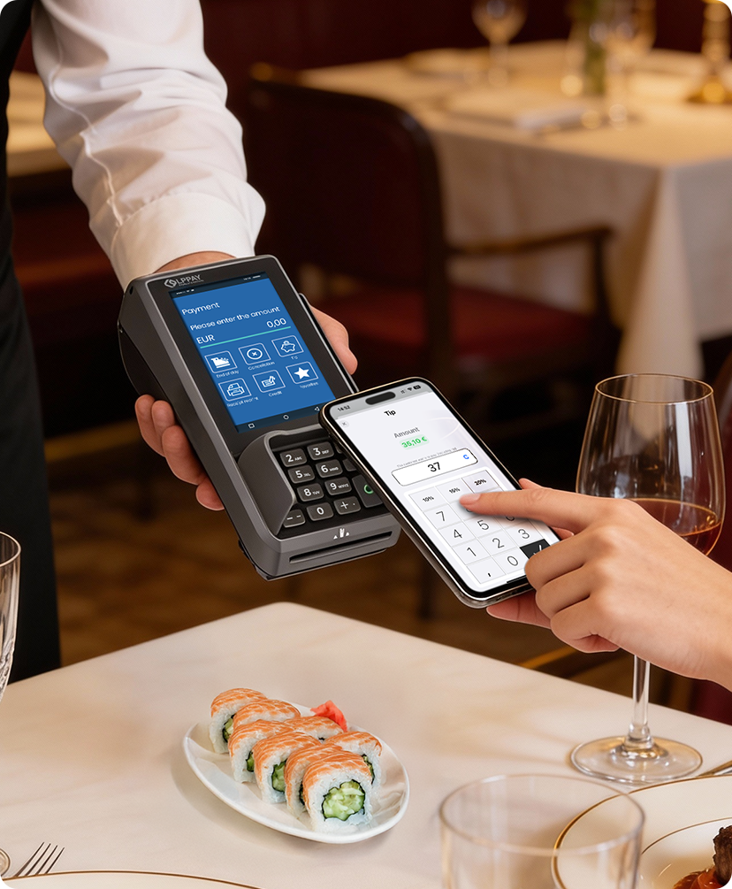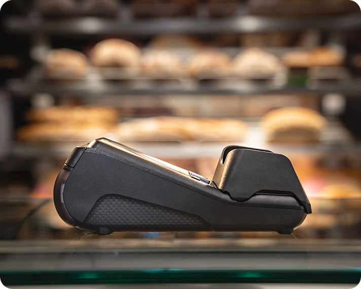 The Base Next is equipped with a 4-inch color display with touch screen . The contactless breader on the Base Next is located at the top of the terminal. This means that when making contactless payments, the customer still has a clear view of the display, which shows the amount and status of the transaction.