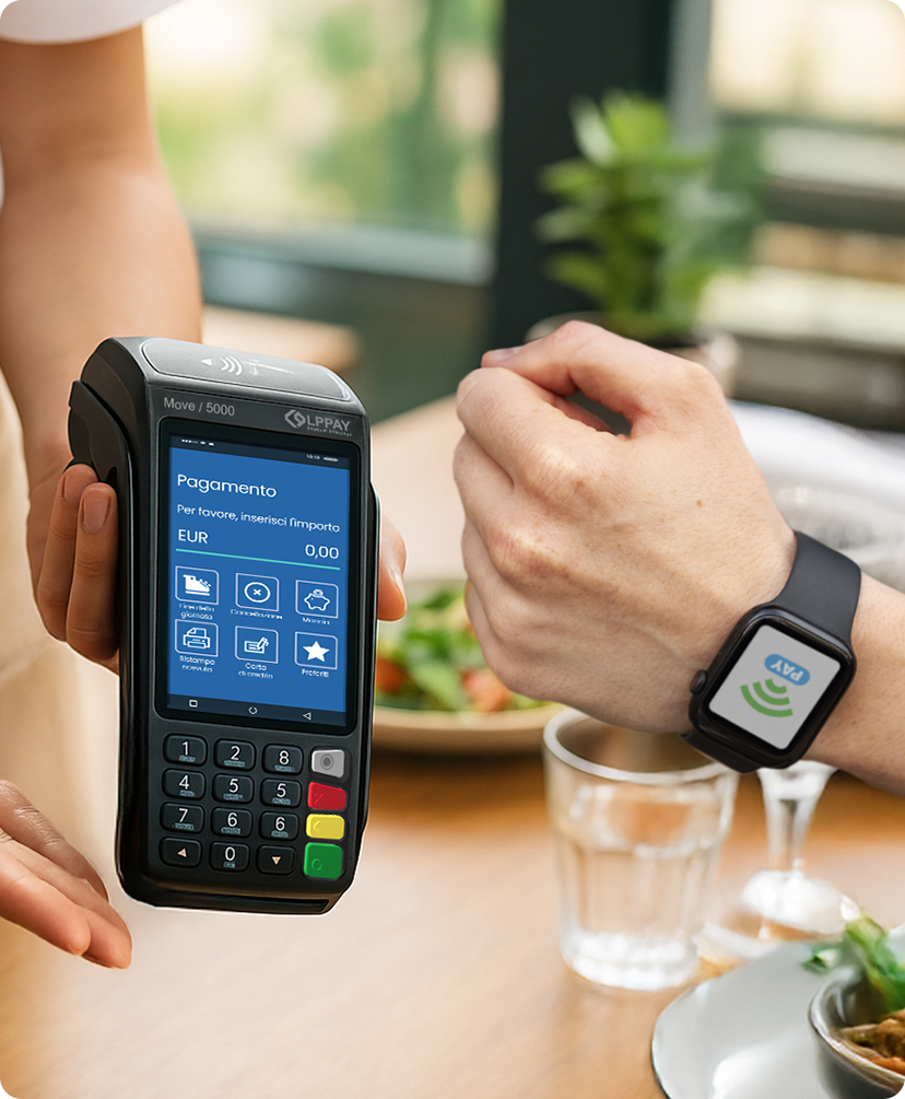 Grazie al display touch ad alta risoluzione e all’interfaccia intuitiva, LPPAY Move 5000 vi supporta nelle operazioni quotidiane di pagamento con carta. Il lettore contactless, posizionato in modo comodo per il cliente, consente anche pagamenti rapidi con smartphone NFC. Grazie alla comunicazione tramite Wi-Fi, Bluetooth o rete mobile, l’utilizzo è estremamente flessibile. processore veloce e la memoria ampia garantiscono prestazioni affidabili anche nel lungo