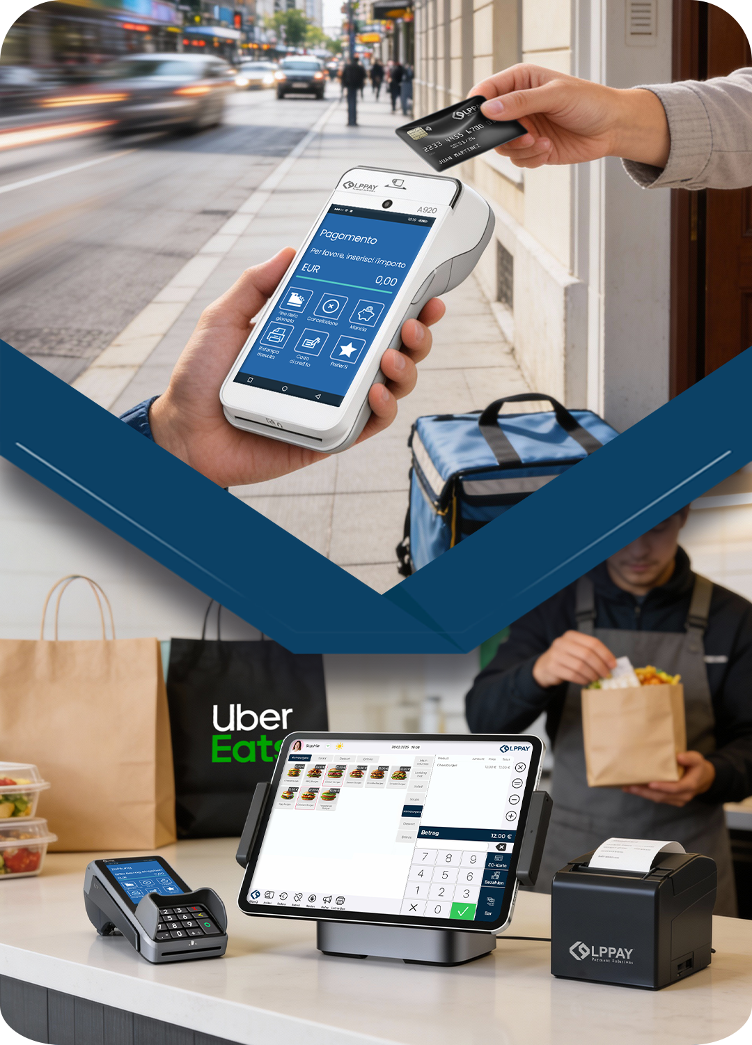 LPPAY offre terminali moderni e soluzioni di pagamento che vi permettono di accettare pagamenti con carta direttamente presso il cliente – in modo semplice, sicuro e mobile.
